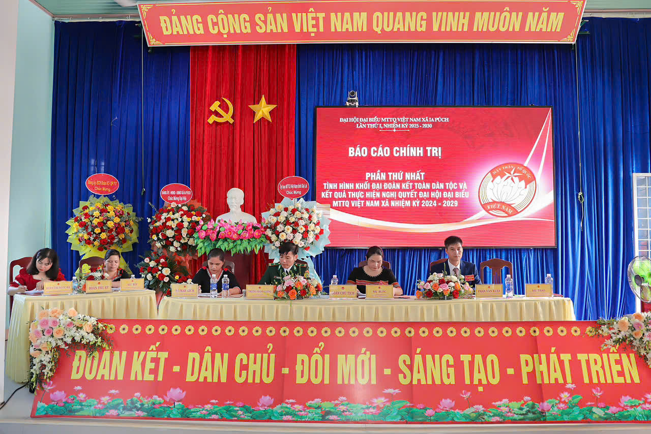 Trong không khí thi đua sôi nổi hướng về Đại hội Mặt trận Tổ quốc các cấp, Đại hội Đại biểu MTTQ Việt Nam xã Ia Púch lần thứ I, nhiệm kỳ 2025 - 2030 đã diễn ra trong 2 ngày (chiều 10/10 và sáng ngày 11/10/2025) tại Nhà văn hóa xã Ia Púch.