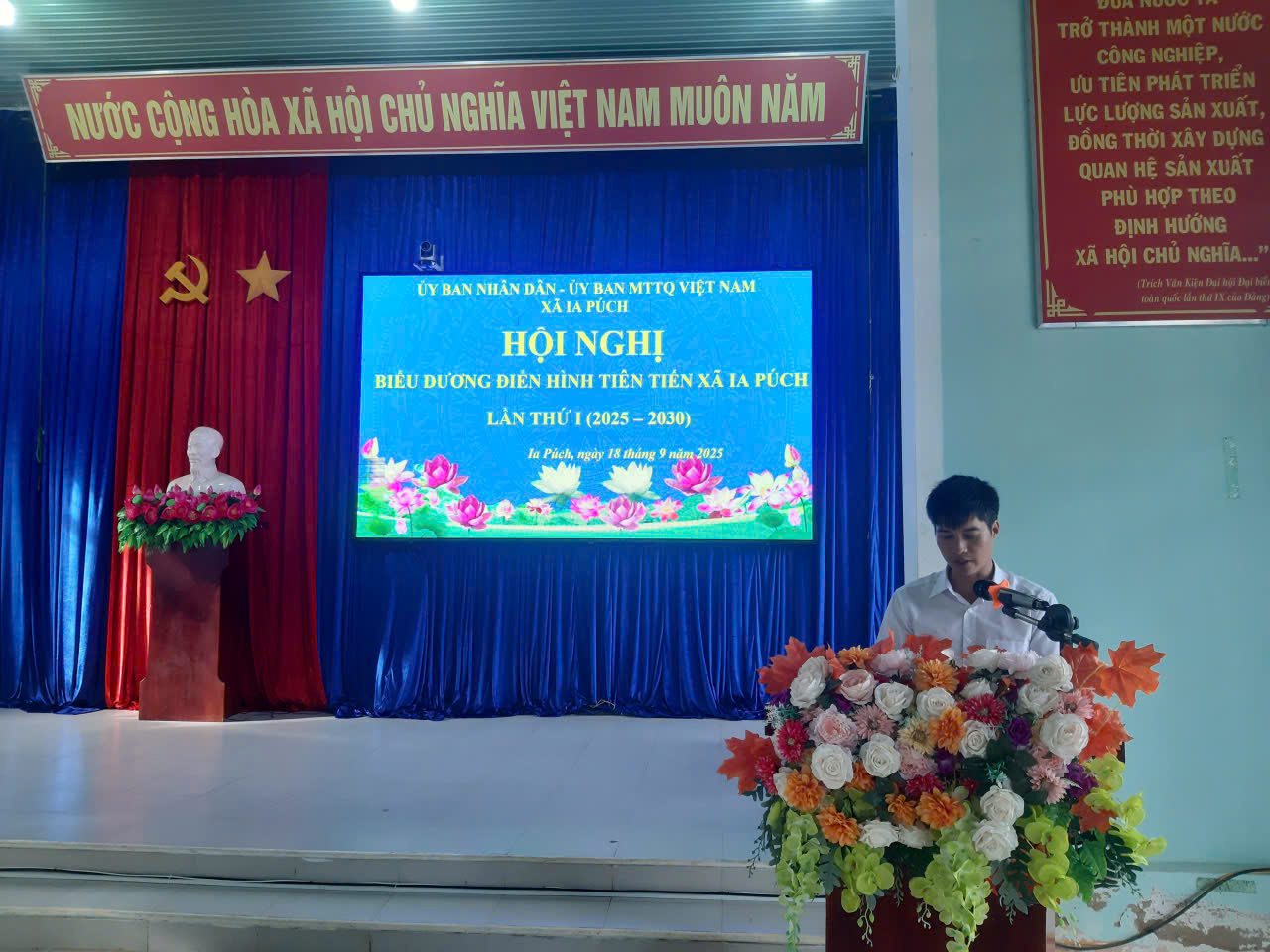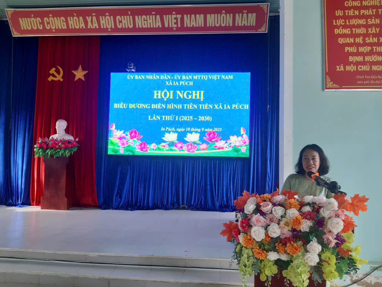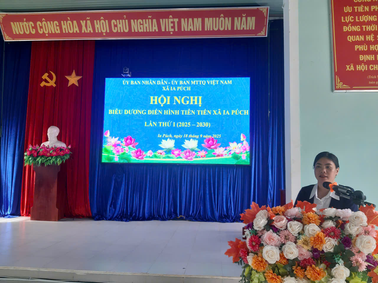 Phát biểu tại hội nghị, đồng chí Phạm Thị Thu Hằng - Phó bí thư Đảng ủy - Chủ tịch UBND xã khẳng định: “Những thành tích hôm nay không chỉ là niềm tự hào của từng tập thể, cá nhân mà còn là kết quả chung của tinh thần đoàn kết, đồng lòng trong toàn xã. Bước vào giai đoạn 2025 – 2030, chúng ta cần tiếp tục đổi mới nội dung và phương thức thi đua, gắn phong trào thi đua với thực hiện nhiệm vụ phát triển kinh tế - xã hội, xây dựng nông thôn mới nâng cao, củng cố quốc phòng - an ninh. Mỗi cán bộ, đảng viên, mỗi người dân Ia Púch hãy là một tấm gương điển hình, góp phần xây dựng quê hương ngày càng giàu đẹp, văn minh.”