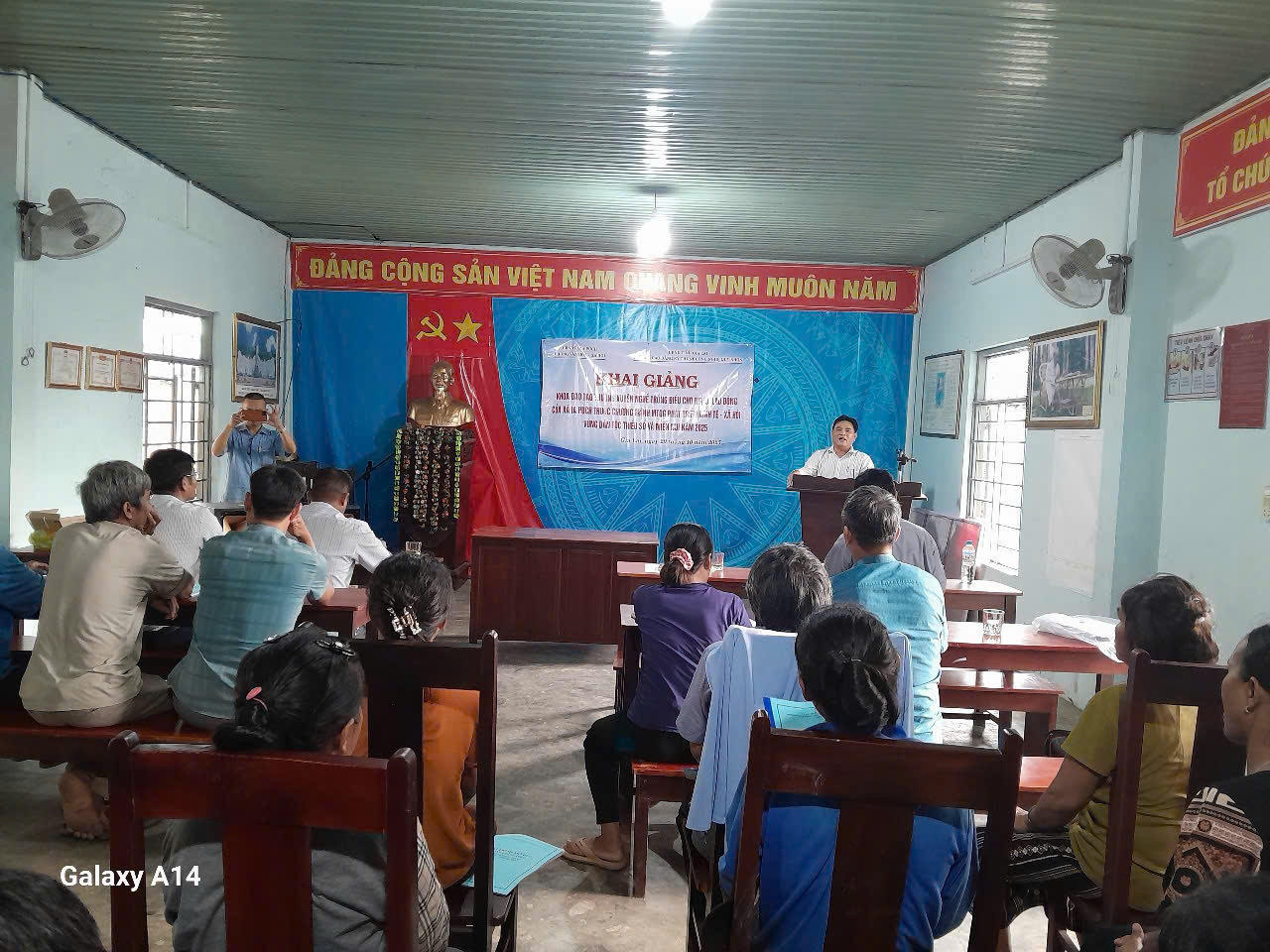 Ông Nguyễn Văn Lâm, Phó Chủ tịch UBND xã phát biểu khai mạc lớp học