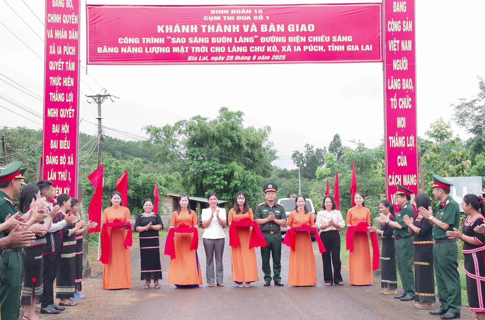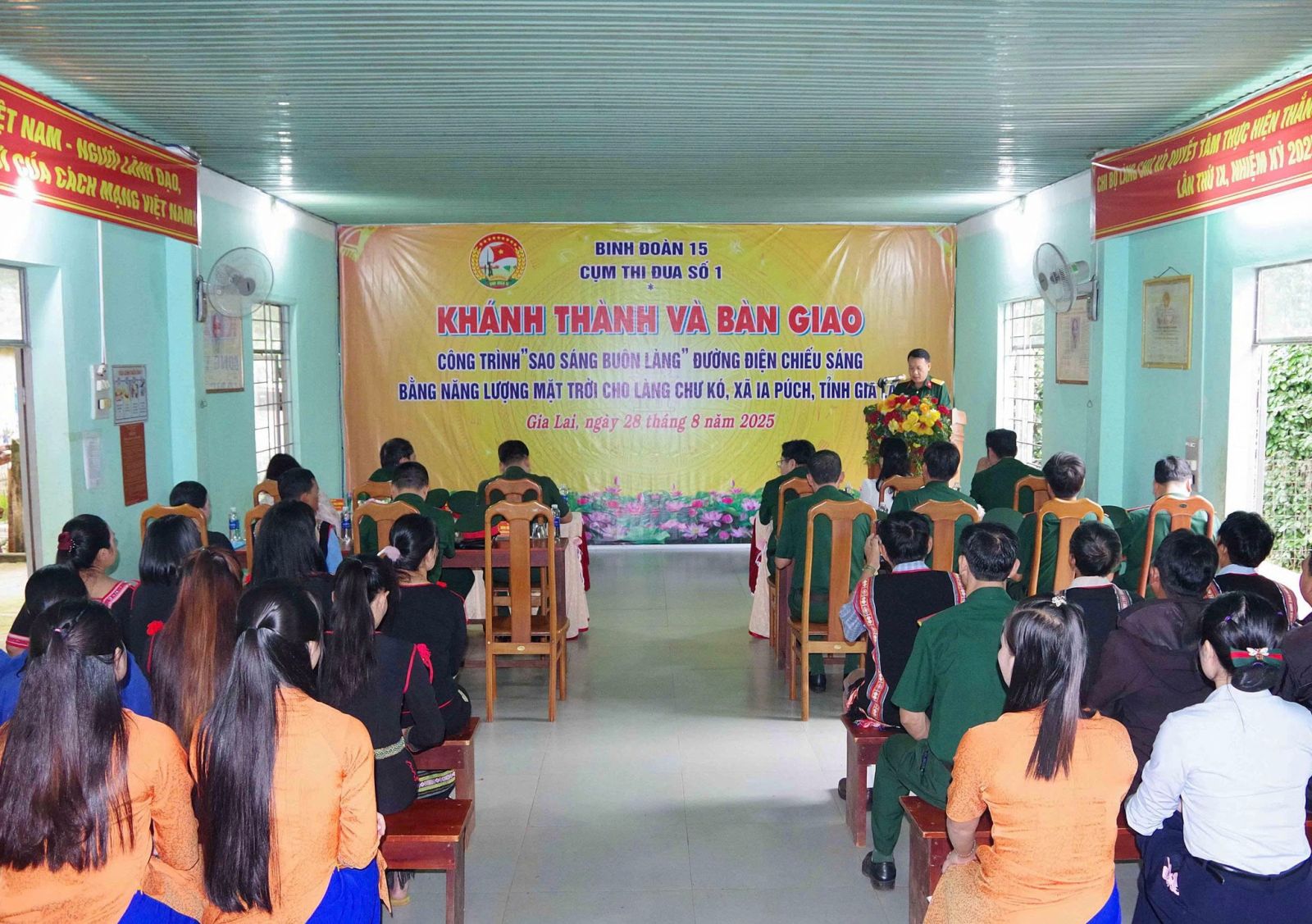 Phát biểu tại buổi khánh thành, Đại tá Nguyễn Hồng Lam, Phó Tư lệnh Binh đoàn 15 chia sẻ: Công trình “Sao sáng buôn làng” được triển khai bằng nguồn kinh phí đóng góp của cán bộ, chiến sĩ, công nhân viên, người lao động các cơ quan Binh đoàn, thể hiện tình cảm, trách nhiệm của đơn vị với đồng bào biên giới. Đây là công trình có ý nghĩa nhiều mặt, giúp nhân dân Ia Púch khắc phục khó khăn về hạ tầng, đặc biệt là hệ thống điện, đường; phục vụ nhu cầu đi lại, sinh hoạt, tổ chức lễ hội, đồng thời góp phần giữ vững an ninh chính trị, trật tự an toàn xã hội, xây dựng nông thôn mới.